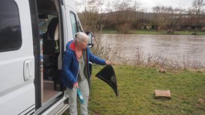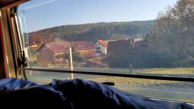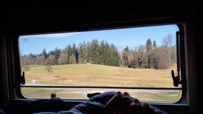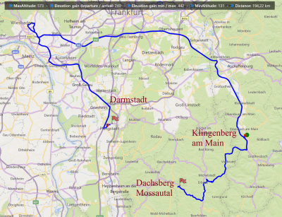 die Berge sind noch in den Wolken. Wir planen nunmehr eine Rundtozr bis zum 04.03 zu fahren. Monika wird dann mit dem Zug nach Wien fahren. Wettertechnisch liegt es nahe durch den Odenwald zu fahren. 30 Minuten Gymnastik. Es ist jetzt 12 Uhr und wir fahren los.