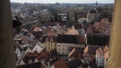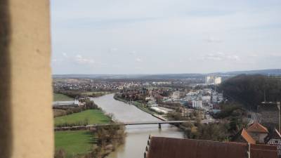 5 Grad und bewölkt. Ein Spaziergang zum Neckar und dann in die Altstadt, den blauen Turm ansehen, d.h. 169 Stufen nach oben. Eintritt bezahlt man erst dort und Frühstück in einem Café. Maultaschen und Sachertorte für mich und eine Suppe und Beerentorte für Monika. 5km.