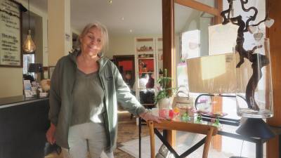 Sind gut am Dachsberg im Mossautal angekommen. 13:40. Hier gibt es ein Café. Mal sehen, ob es offen hat. Und wir haben noch Zeit für eine Miniwanderung. Es werden doch 9km mit 310hm und direkt beim Platz gibt es ein Odenwälder Café mit einer kleinen Speisekarte. Grünkernfrikadellen, Bratwurst Kochkäse und ein Schmucker Bier.