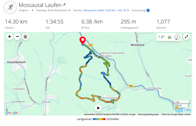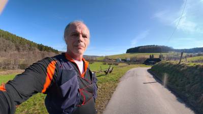 Knapp 5 Grad und neblig. 10 Uhr - die Sonne kommt raus. Sieht klasse aus. Monika hat Halsweh. Ich gehe Laufen zur Köhlerhütte und über Hüttenthal zurück. 14km, 300hm.