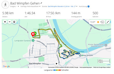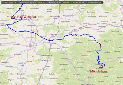 Sind gut in Bad Wimpfen angekommen, 2km entfernt. Momentan haben wir kein Netz. ein Minilauf mit 6,5km